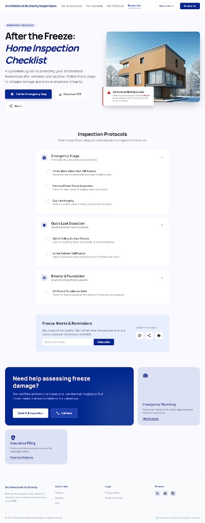 Book a documented post-freeze walk-through with MyHuis—or call for urgent triage.